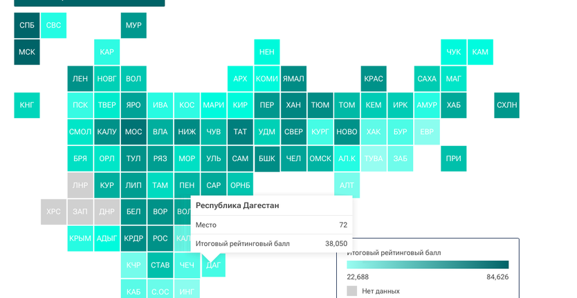 Дагестан оказался на 72 месте, между Псковской и Курганской областями.
