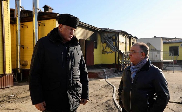 Вместе с гендиректором птицекомплекса Аштаром Батыровым, руководителем Минсельхозпрода РД Мухтарбием Аджековым и главой Хасавюртовского района Арсланбеком Алибековым и представителями МЧС Абдулмуслим Абдулмуслимов осмотрел пострадавшую в результате пожара территорию, а также посетил другие действующие площадки предприятия, в том числе цех по производству гранулированных комбикормов и птичники.