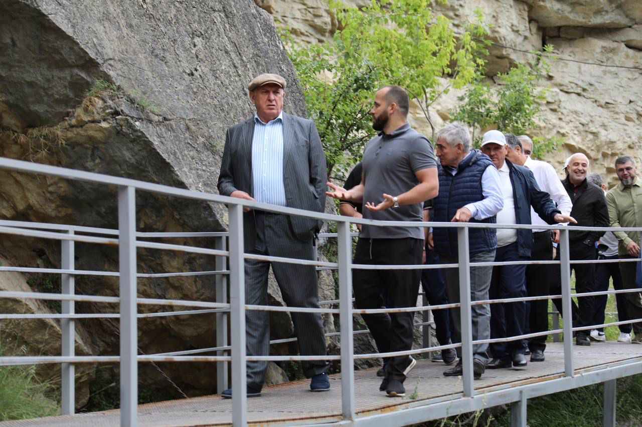 Сопровождают председателя Правительства глава муниципалитета Расул Гусейнов, вице-премьеры Дагестана Нариман Абдулмуталибов и Заур Эминов, министр туризма РД Эмин Мерданов, министр природных ресурсов и экологии Александр Зимин, министр сельского хозяйства Мухтарбий Аджеков и руководитель АПИ Гусейн Гусейнов.