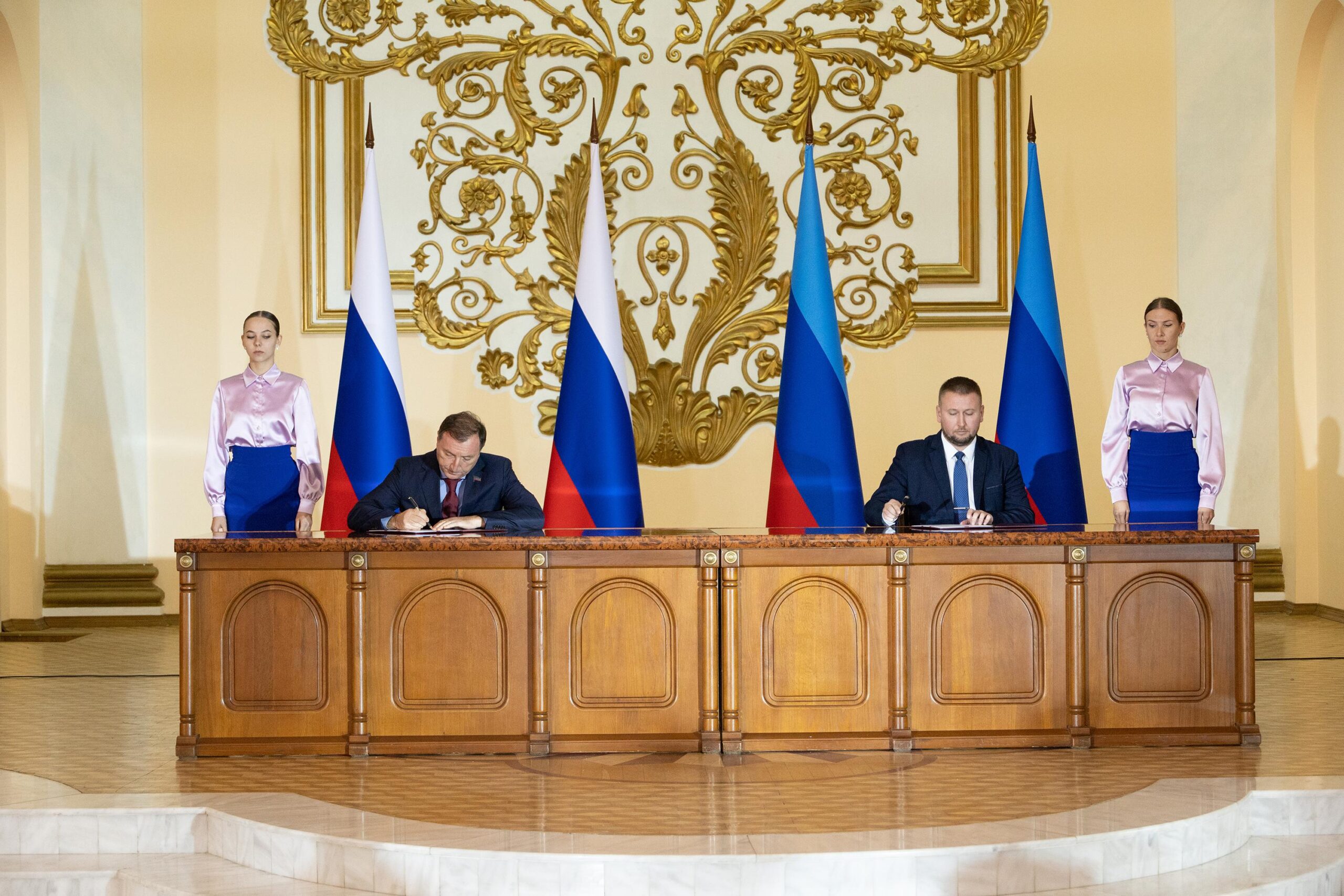 В Луганске состоялась официальная церемония подписания Соглашения о сотрудничестве между Народным Советом Луганской Народной Республики и Народным Собранием Республики Дагестан. Делегацию из Дагестана возглавил спикер парламента Заур Аскендеров, который прибыл с рабочим визитом в ЛНР.