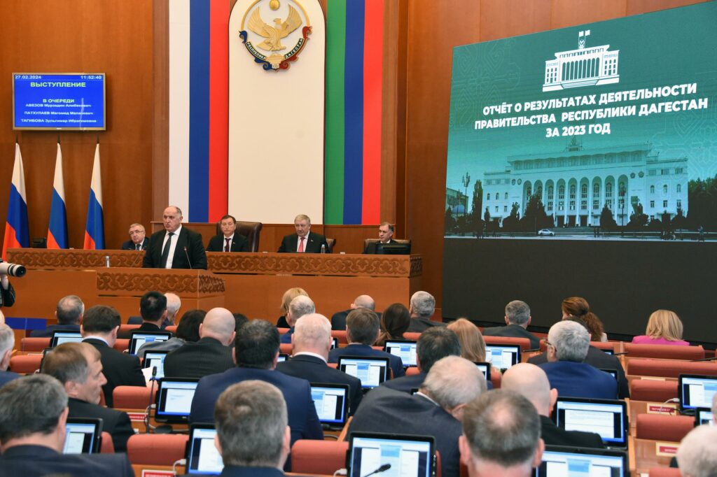 Первым вопросом повестки дня был отчет о результатах деятельности Правительства Республики Дагестан за 2023 год, в том числе по вопросам, поставленным Народным Собранием. Основные цифры, факты и показатели работы кабинета министров представил Председатель Правительства Абдулмуслим Абдулмуслимов.