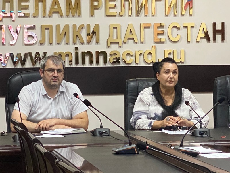 Хасайбат Валиева поприветствовала участников встречи от имени министра по национальной политике и делам религий РД Энрика Муслимова и проинформировала участников совещания о мероприятиях проведённых предстателями и общественными объединениями в субъектах Российской Федерации с января по август 2023 года .