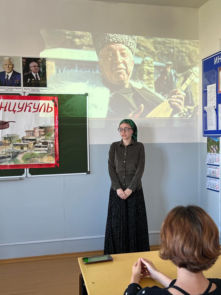 Обучающиеся прочитали стихи на родных языках, исполнили песни и танцы народов Дагестана, посмотрели видеоролики о народных промыслах дагестанцев, красивых туристических точках республики.