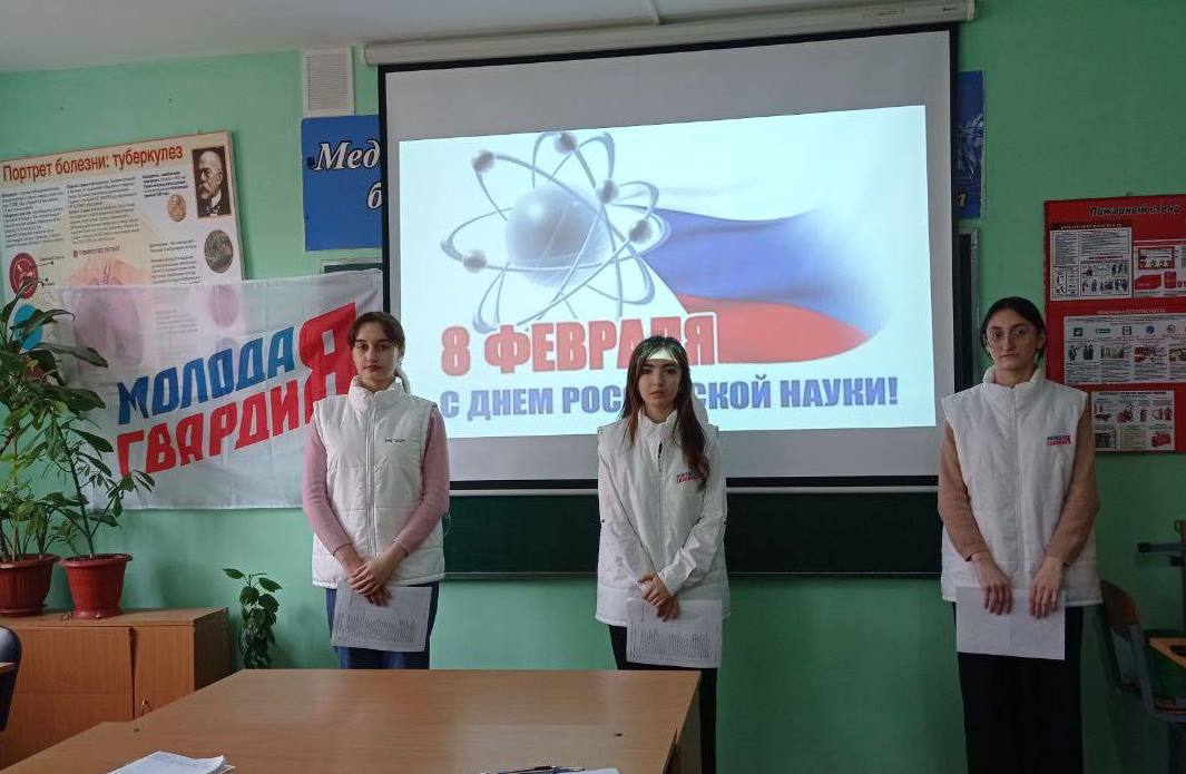 Сегодня, 9 февраля, активисты Избербашского местного отделения «Молодой Гвардии» организовали познавательную презентацию для студентов Индустриально-промышленного колледжа. А также провели социальный опрос на знания учащимися российских ученых и их разработок, в рамках Дня российской науки, который отмечается ежегодно 8 февраля.