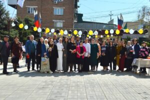 Во дворе колледжа дежурные раздавали подарки и поздравительные открытки, звучали нашиды, поздравительные слова от руководителей и преподавателей двух учебных заведений.