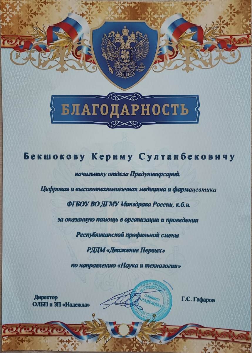 Сотрудник ДГМУ принял участие в Республиканской профильной смене РДДМ «Движение первых» в направлении «Наука и технологии»