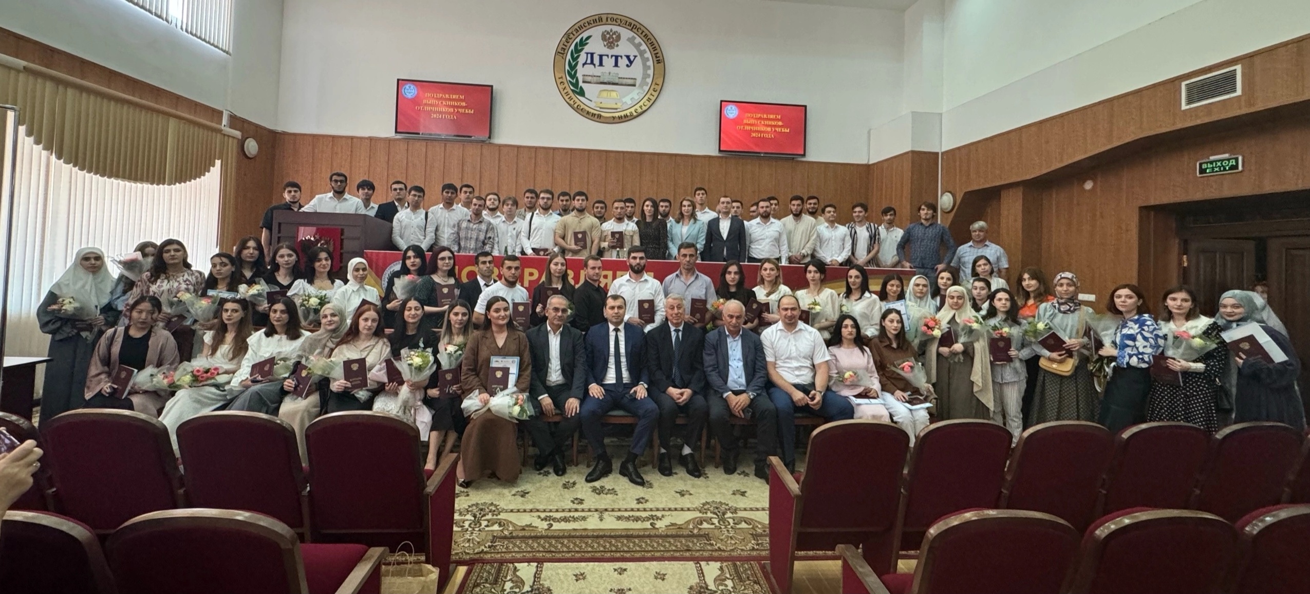 Право первым вручать дипломы выпускникам предоставили почетному гостю мероприятия, заместителю Председателя Правительства Республики Дагестан Нариману Абдулмуталибову: "Мы знаем Даггостехуниверситет как один из лучших вузов нашей республики и страны, и мне отрадно наблюдать, как сегодня университет продолжает развиваться, а его руководство и коллектив сохраняют и укрепляют те традиции, которые были заложены их предшественниками еще при основании этого замечательного вуза. Хочу отметить, что технический университет, ректор и профессорско-преподавательский состав полностью поддерживаются Главой республики Сергеем Меликовым, а также Правительством республики во главе с его Председателем Абдулмуслимом Абдулмуслимовым, а все ваши инициативы и предложения находят понимание и отклик на всех уровнях. Дорогие выпускники! Я уверен, что коллектив ДГТУ постарался на славу и взрастил из вас настоящих профессионалов, которые будут достойно представлять нашу республику и вносить свой вклад в социально-экономическое развитие Дагестана и страны. Помните, вы нужны Дагестану, вы нужны России, удачи вам, новых успехов и побед!"