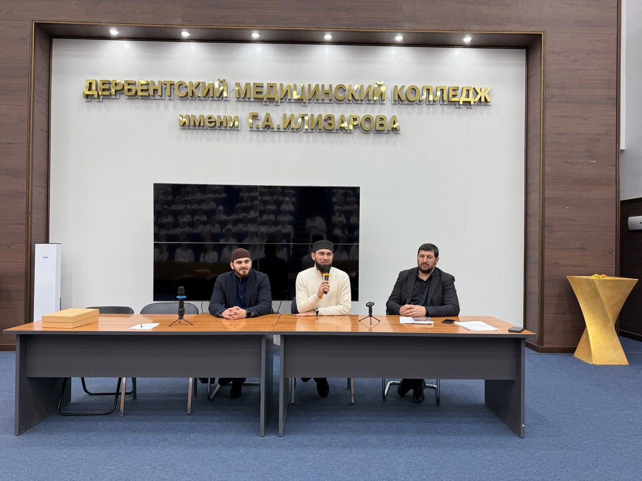 18 февраля 2025 года на базе ГБПОУ РД «Дербентский медицинский колледж им.Г.А.Илизарова» состоялась встреча студентов 2-х курсов отделения Сестринское дело с представителями духовенства. На встрече присутствовал полпред. муфтията Республики Дагестан в Южном территориальном округе Мухаммад Майранов и сотрудник отдела Просвещения в городе Дербент Хабиб Умаханов. Беседа была посвящена вопросам взаимодействия молодежи со взрослыми. Встреча прошла в дружественной атмосфере в формате «Вопрос- ответ».