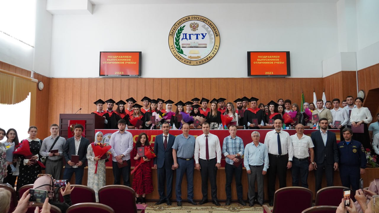 С приветственным словом к собравшимся обратился и.о. ректора ДГТУ Назим Баламирзоев. Он поблагодарил студентов за отличную учебу, активное участие в общественной жизни университета и поздравил собравшихся с этим важным событием - получением заветного красного диплома и знака «Отличник ДГТУ».