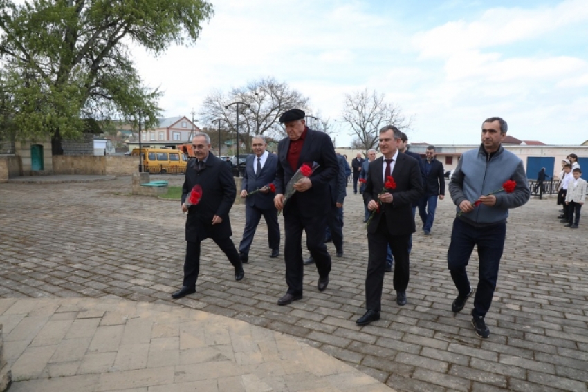 Абдулмуслим Абдулмуслимов возложил цветы к памятнику Сулеймана Стальского в селе Касумкент