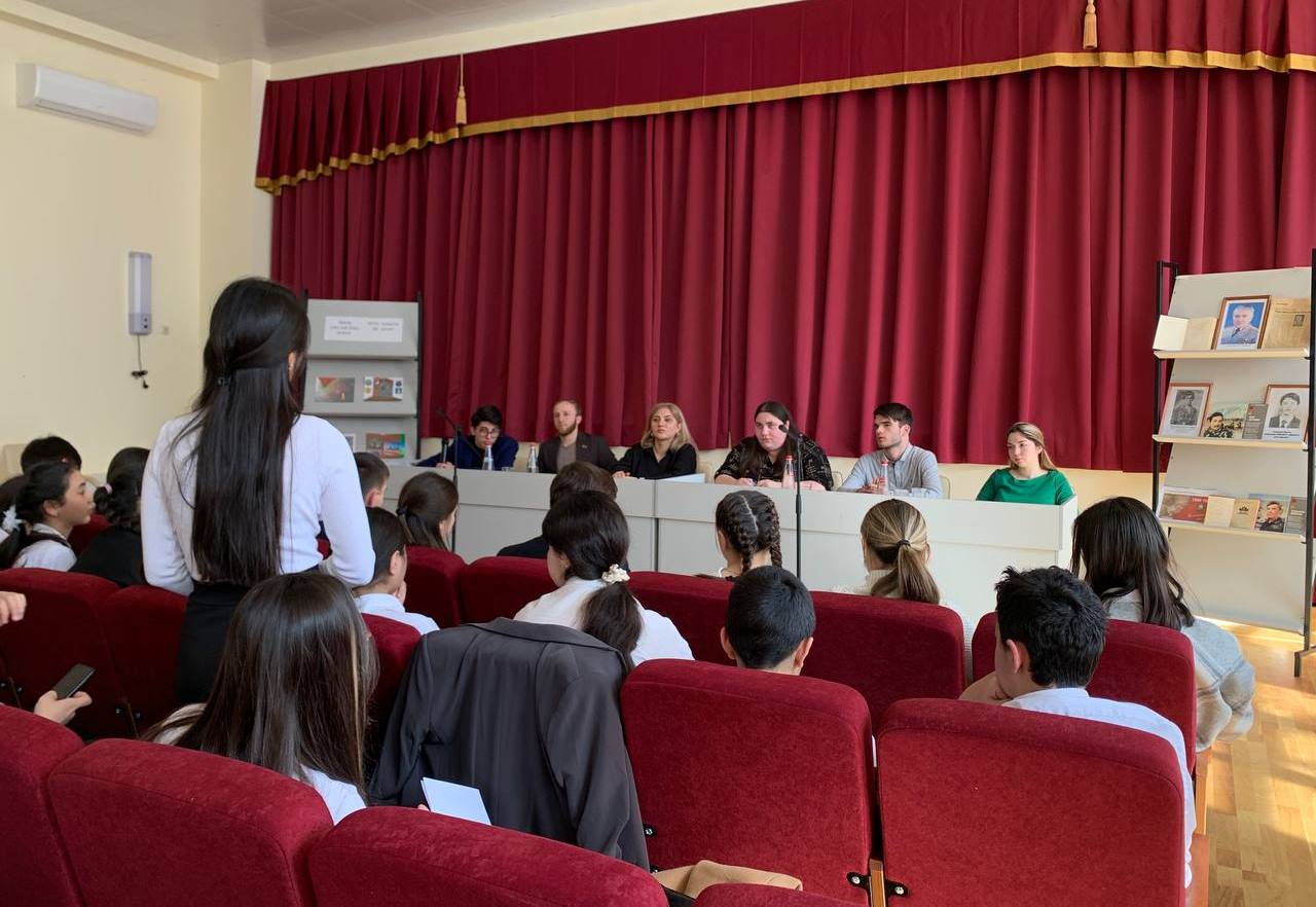 На встрече также присутствовали Начальник отдела воспитательной работы и дополнительного образования Управления образования г. Дербент Джамиля Юсупова и члены Молодежного парламента при Собрании депутатов ГО «город Дербент».
