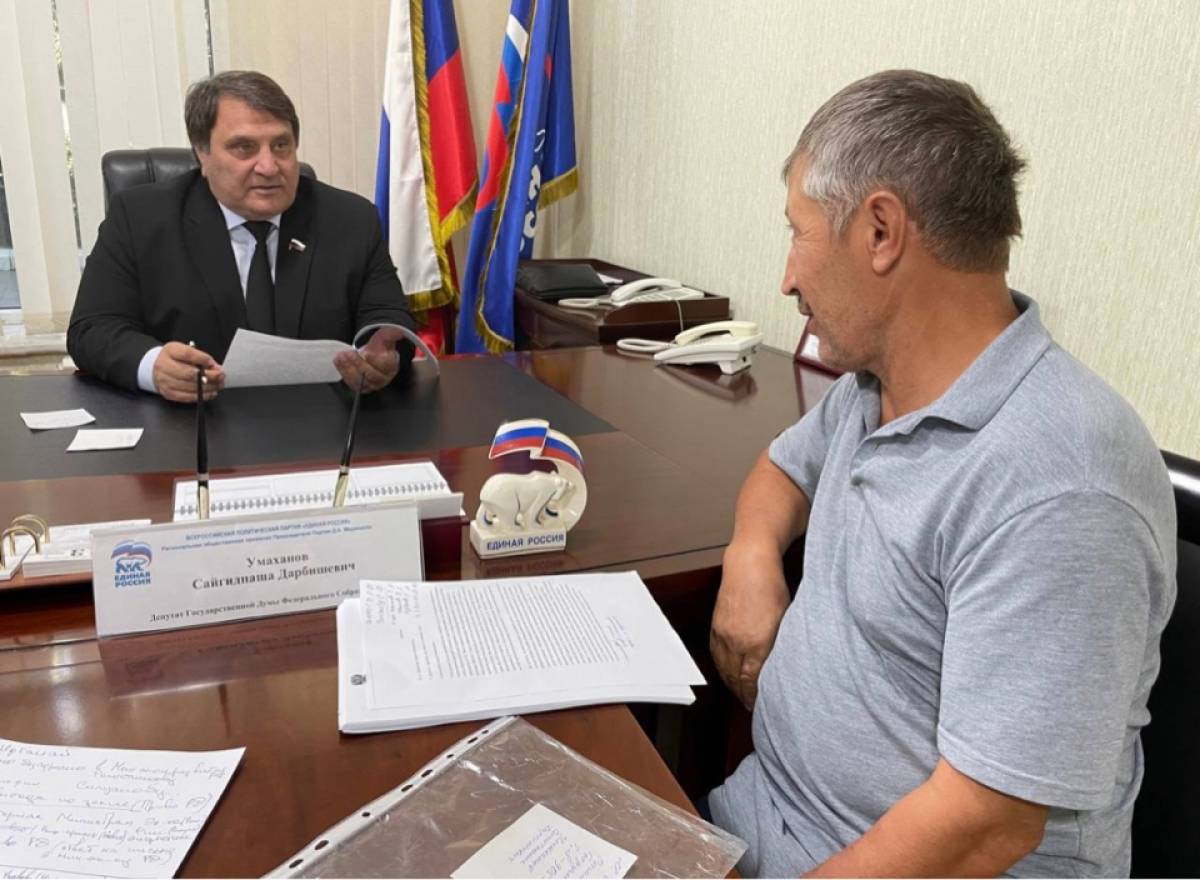 13 сентября депутат Госдумы РФ Сайгидпаша Умаханов провел личный прием граждан в Региональной общественной приемной Партии "Единая Россия". К парламентарию обратились 7 жителей республики по вопросам жилищно-коммунального хозяйства, образовательной системы и социальной поддержки.