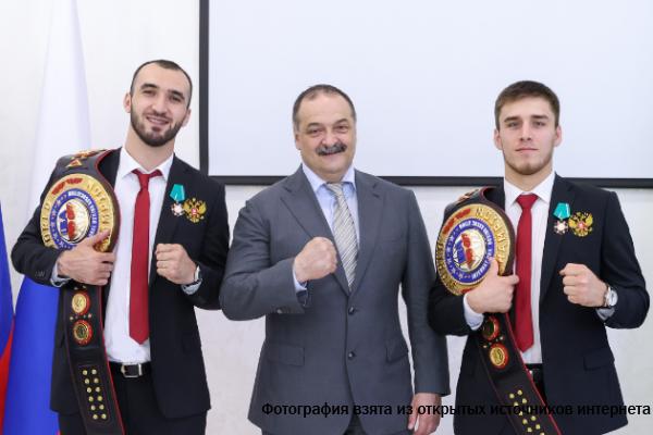 В субботу, 27 мая, руководитель Дагестана Сергей Меликов встретился с чемпионами мира по боксу этого года Шарабутдином Атаевым и Муслимом Гаджимагомедовым в здании Дома дружбы.