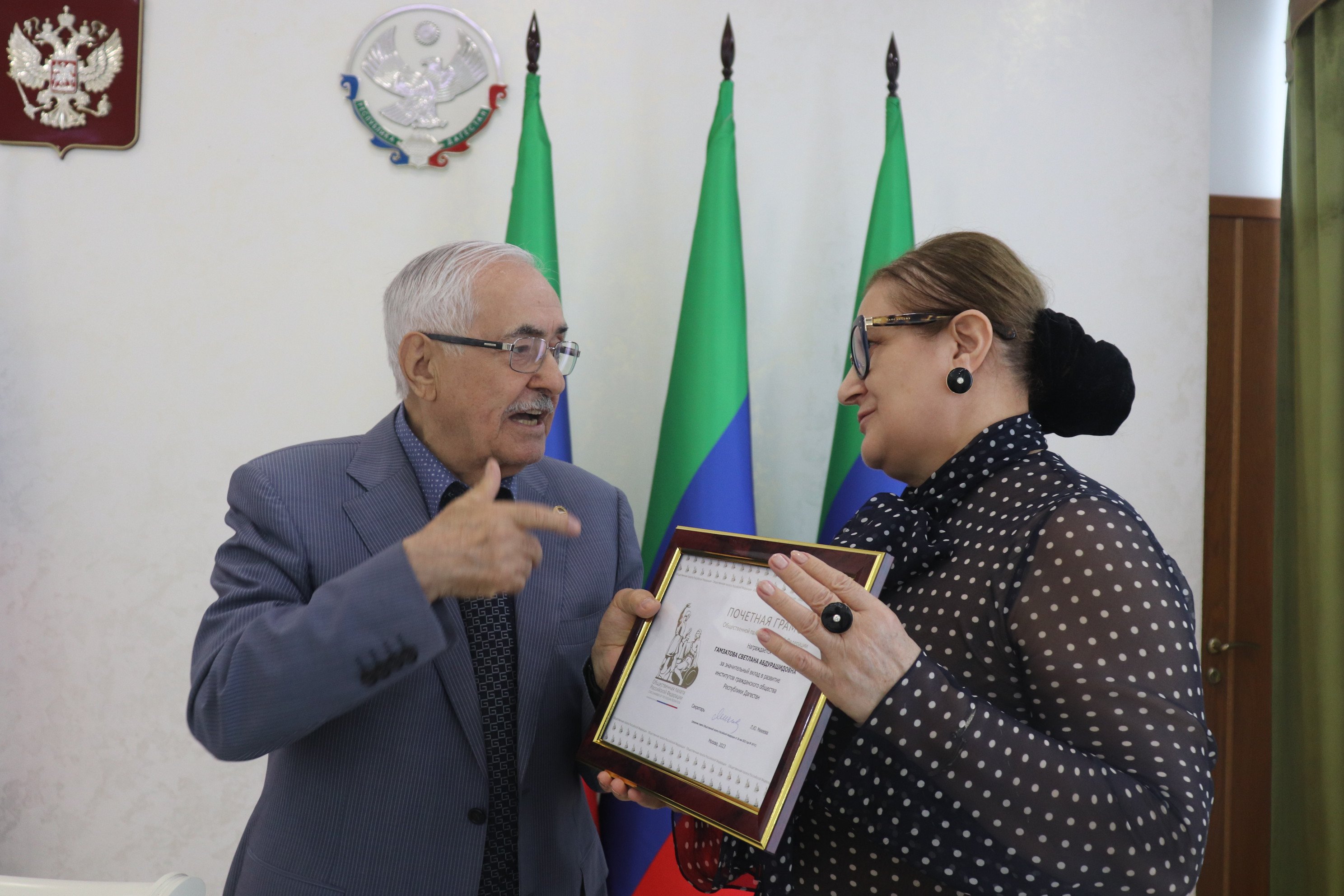 В рамках подведения итогов работы прошлого созыва Светлана Гамзатова была награждена Почетной Грамотой Общественной палаты РФ за значительный вклад в развитие институтов гражданского общества РД.