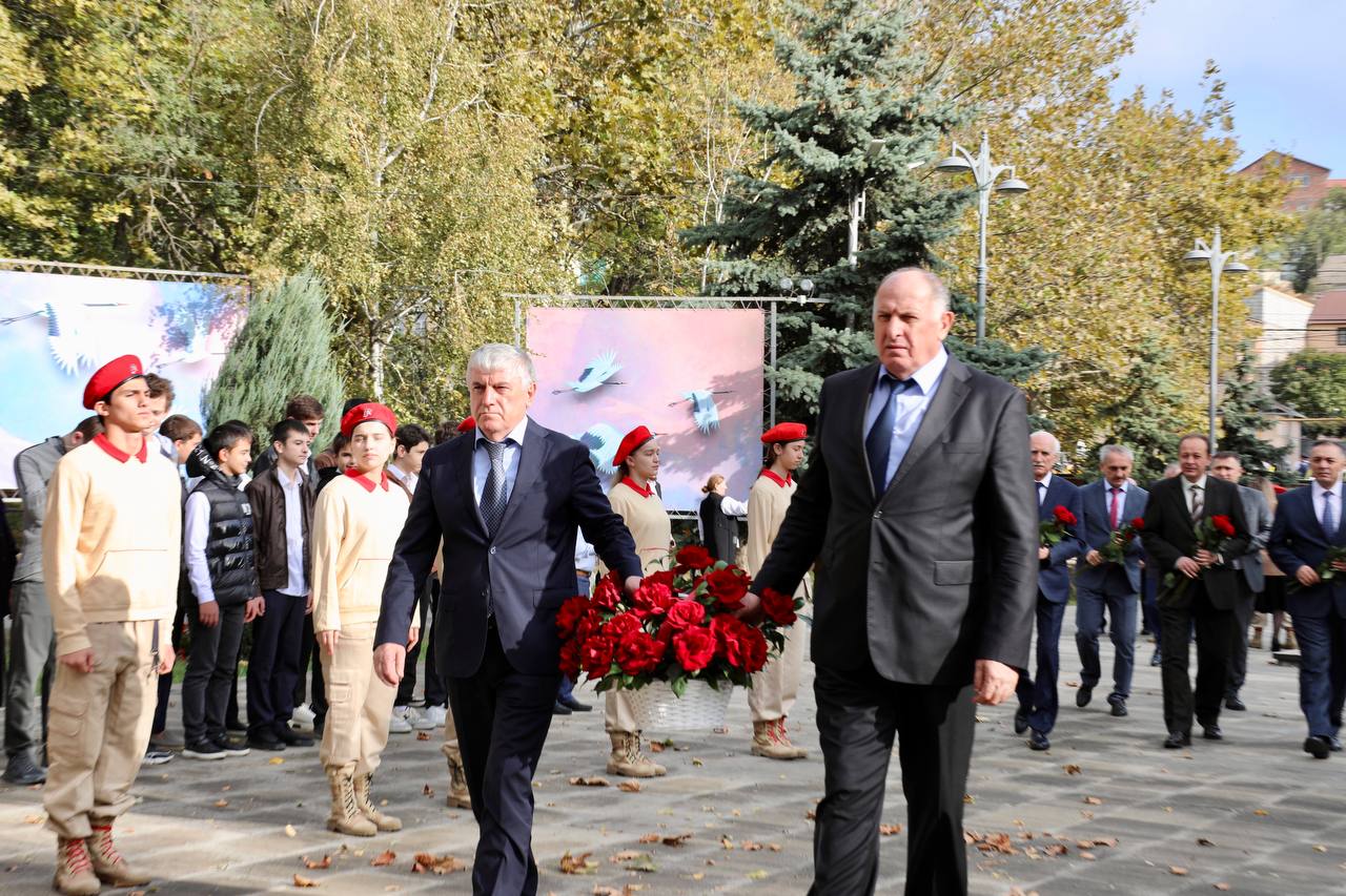 Делегация под руководством Председателя Правительства Республики Дагестан Абдулмуслима Абдулмуслимова сегодня, 9 октября, приняла участие в церемонии возложения цветов в парке