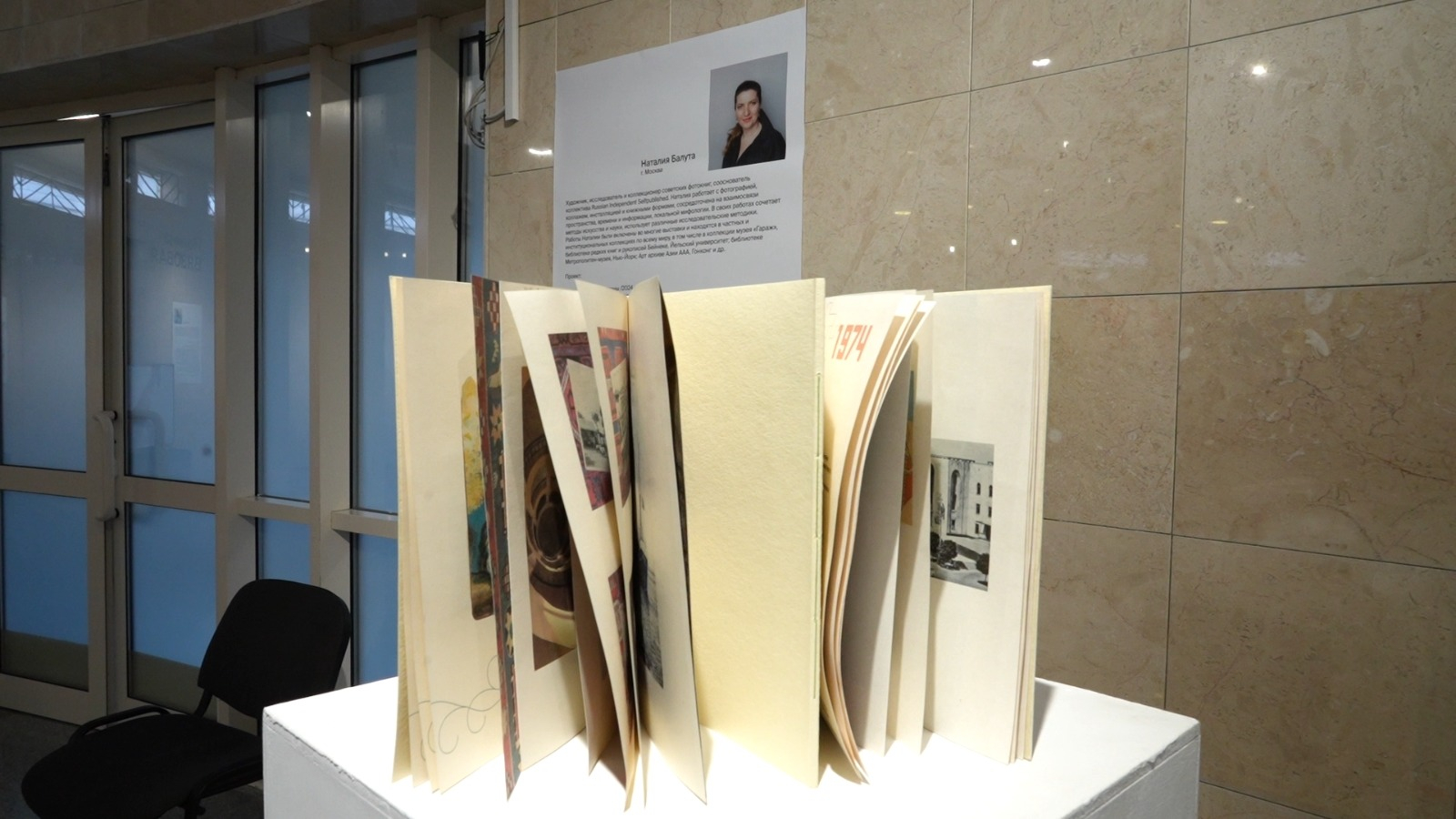 В экспозиции представлено 6 индивидуальных проектов художников – участников арт-резиденции: аудиовизуальная инсталляция, книга художника, выставка объектов и гравюры, зин (авторское малотиражное издание), кинотанец.