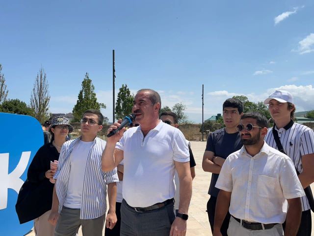 Председатель городского Собрания депутатов Гасан Мирзоев и члены городского Молодежного Парламента поприветствовали в режиме реального времени через VK-портал, установленный в парке Низами Гянджеви, спикера петербургского парламента Александра Бельского.
