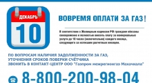 «Газпром межрегионгаз Махачкала» призывает население погасить долги за газ до 10 декабря Поставщик газа в Дагестане ООО «Газпром межрегионгаз Махачкала» напоминает абонентам о необходимости своевременных ежемесячных р