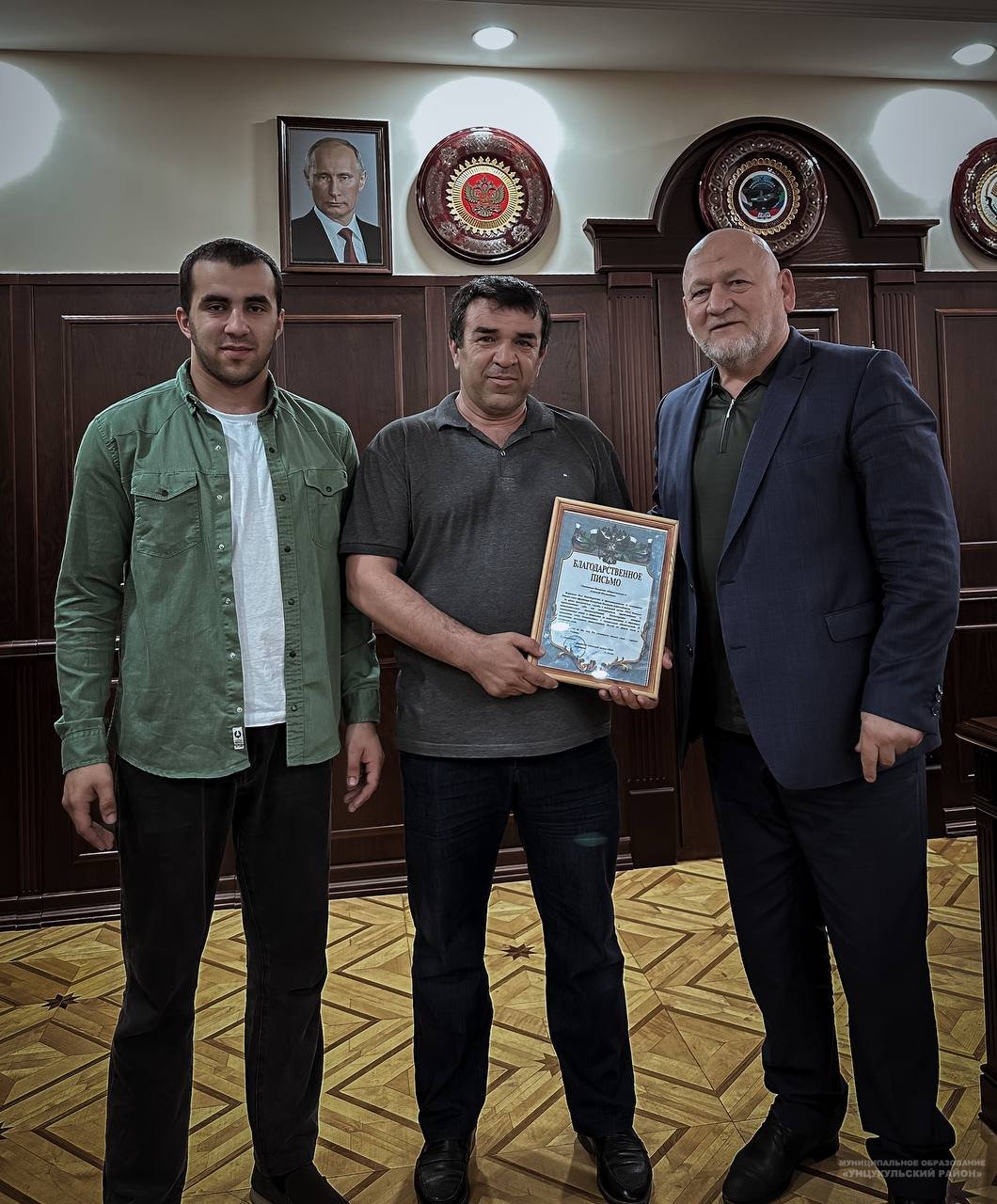 Глава района Иса Нурмагомедов со словами благодарности вручил отцу Магомеда Максудова благодарственное письмо от командования воинской части.