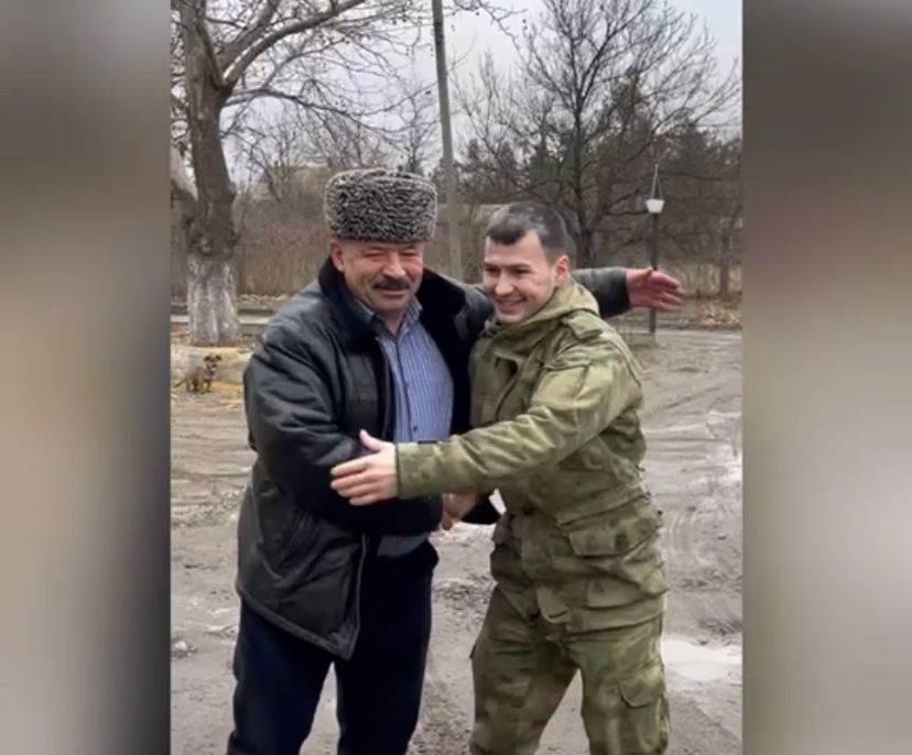 В сети появились кадры трогательного видео, на котором отец и сын встретились в зоне проведения СВО. Публикация появилась в Телеграм на странице главы Казбековского района.