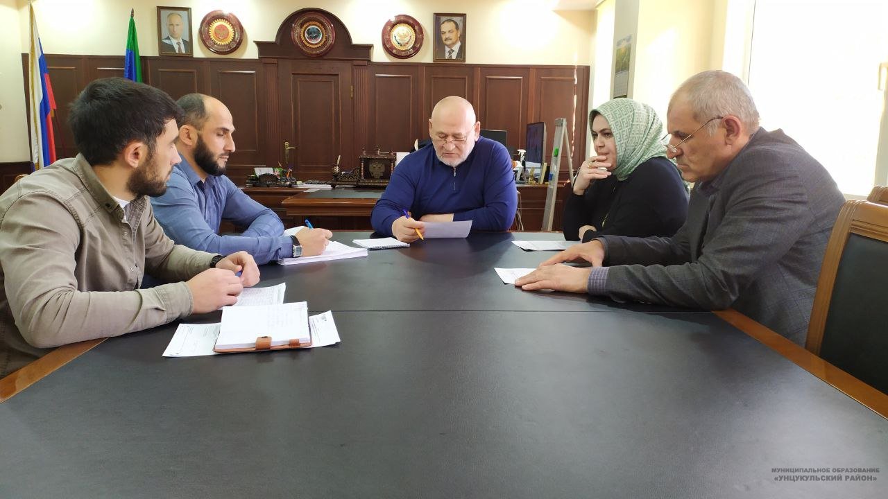 В совещании приняли участие, заместитель главы Карахма Гаджиевич, начальник экономического отдела Муслим Адуев, заместитель начальника отдела финансов Азра Магомедова, главный специалист отдела экономики Давуд Магомедов.