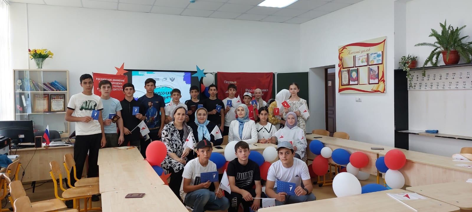 В рамках встречи Раисат Хайбулаева вместе со специалистом по организации работы «Движение Первых» в Казбековском районе, руководителем местного отделения «Движение Первых» Юсуповой Наидой вручили паспорта гражданина Российской Федерации учащимся, достигшим 14-летнего возраста, а также подарили значки и обложки для паспортов «Движение первых».