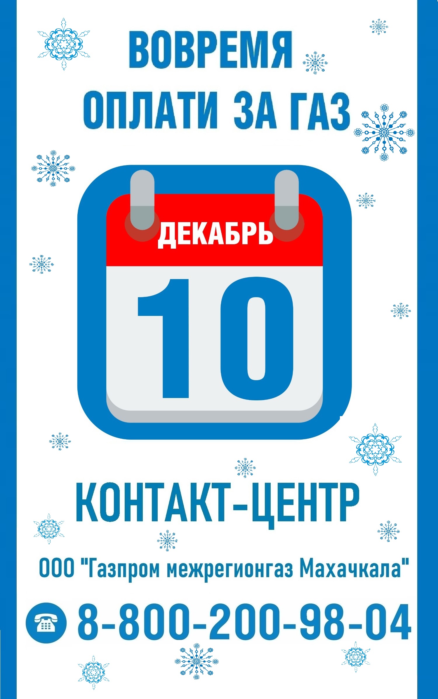 Для потребителей газа в ООО «Газпром межрегионгаз Махачкала» также организована работа «Контакт центра». По бесплатному номеру 8-800-200-98-04 абоненты могут узнать сумму своей задолженности, а также получить ответы на все вопросы, касающиеся газоснабжения.