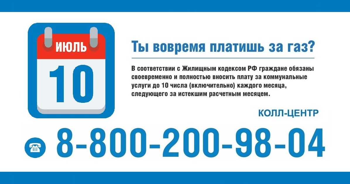 Согласно правил поставки газа абонент обязан вносить плату за газ до 10 числа месяца, следующего за истекшим.