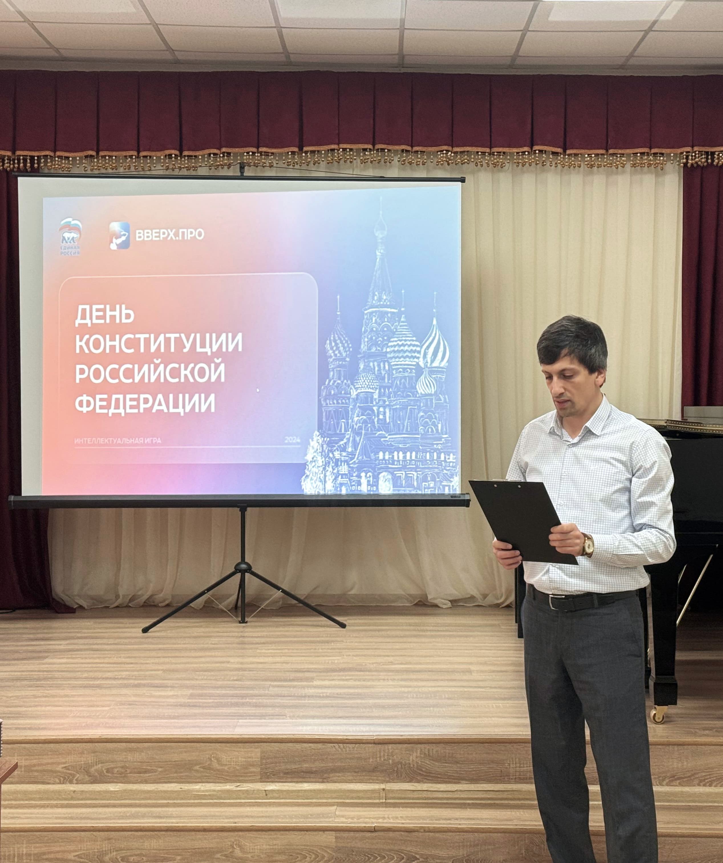 Сегодня, 12 декабря, в День Конституции Российской Федерации депутат городского Собрания Абдулгалим Магомедов провел тематическую интеллектуальную игру на знание Конституции РФ со студентами Дербентского музыкального училища им. Ашурова Д. Ш., подготовленную проектом «ВВЕРХ.ПРО» и штабом общественной поддержки. Мероприятие получилось интересным и познавательным.