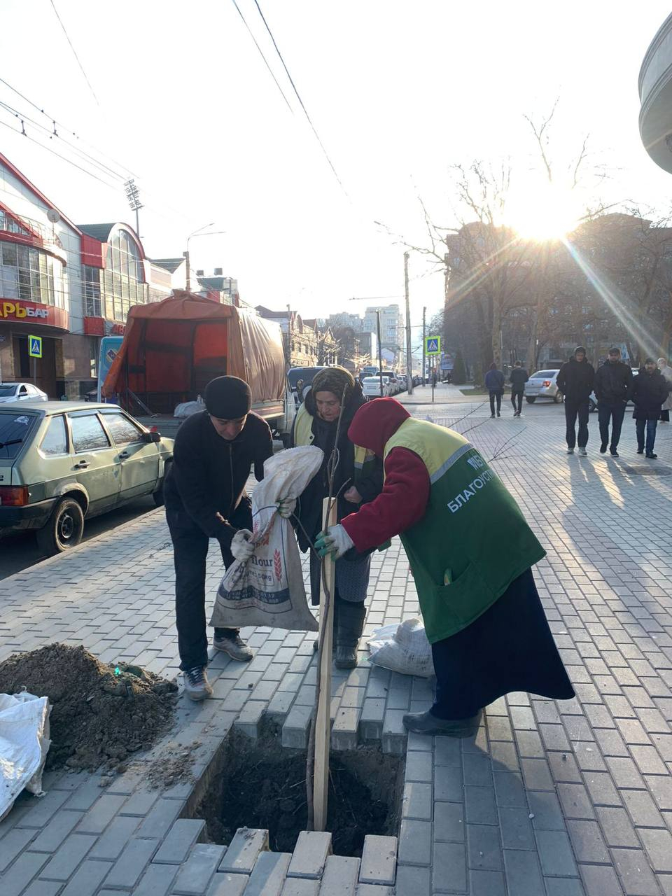 Сегодня работники МБУ «Благоустройство» провели посадку деревьев