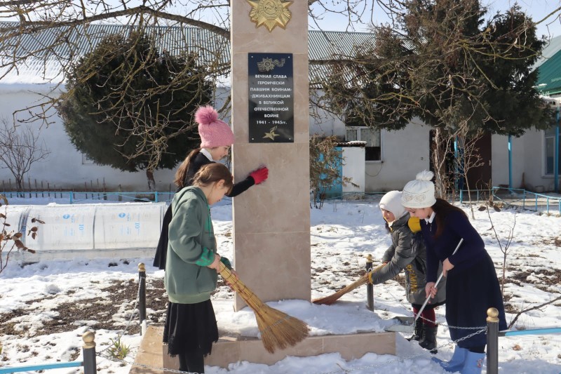 В предпраздничные дни учащиеся образовательных учреждений, засучив рукава и вооружившись необходимым рабочим инвентарем, провели побелку памятников и обелисков павшим воинам, почистили от мусора и засохшей листвы территории вокруг них, а также расчистили пришкольный двор. Особое внимание также было уделено памятным доскам, установленным в школах и улицах сел муниципалитета в честь участников специальной военной операции на Украине.
