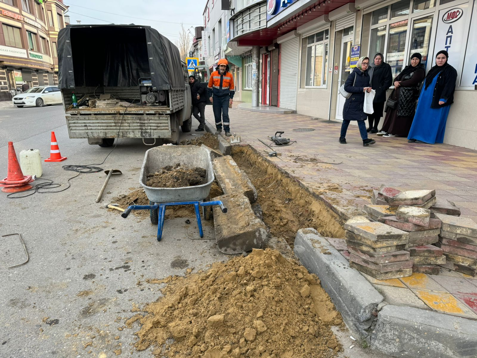 Специалистами МБУ «Благоустройство» проводятся монтажные работы по установке пандусов на ул. Шихсаидова, 43