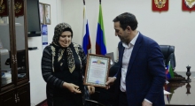 Заместитель главы Гумбетовского района Алихан Давудгаджиев от имени главы Гумбета Галипа Галипова пожелал Мухтаровой крепкого здоровья и дальнейших успехов в работе.