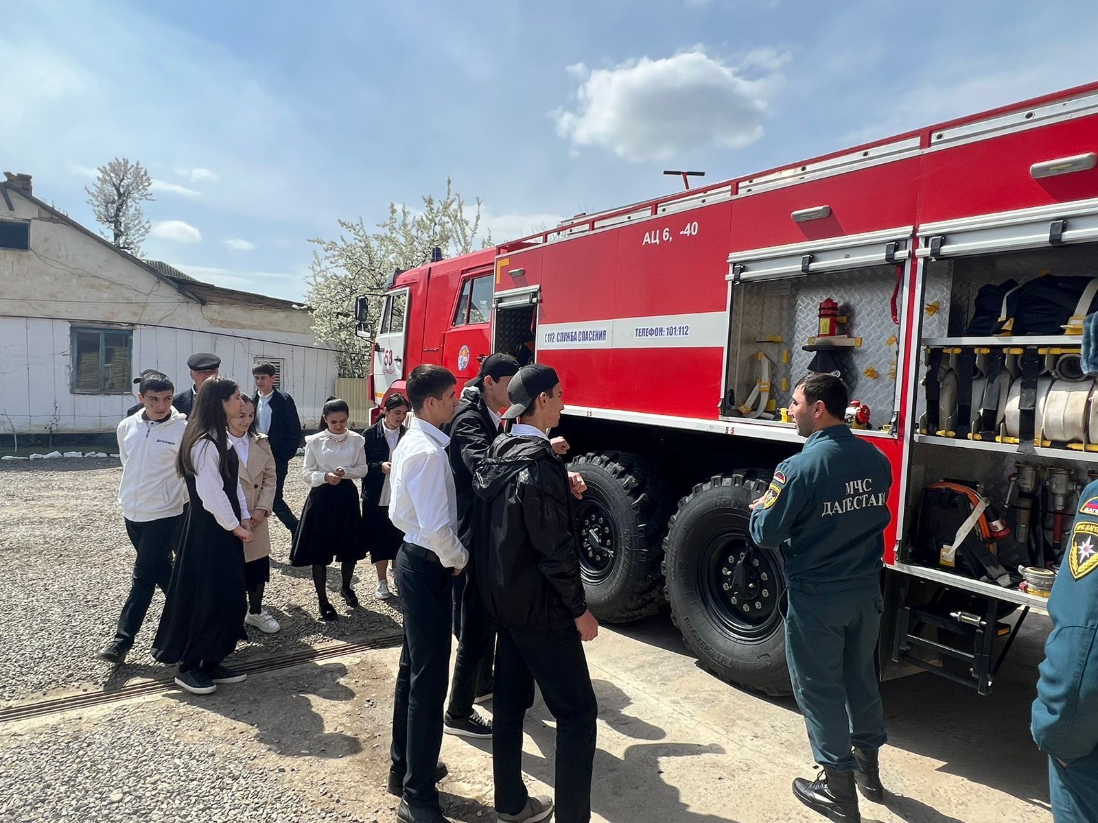 В пожарной части № 53, дислоцированной в с. Касумкент, провели День открытых дверей для старшеклассников Новопоселковой общеобразовательной школы и их учителя по ОБЖ Ф. Гаджимусаева.
