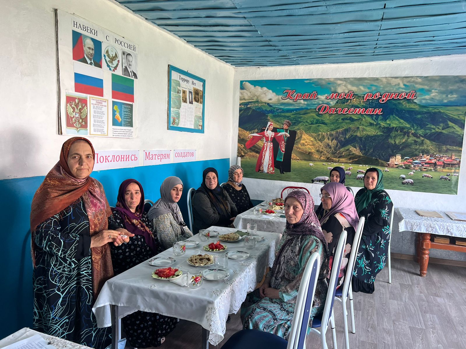 Присутствовавшая на мероприятии главный специалист МКУ «Отдел культуры» Зарема Гусейнова пожелала матерям крепкого здоровья, терпения и выразила огромную благодарность за воспитание таких мужественных и смелых патриотов. Чтобы немного отвлечь и развеять матерей от постоянной заботы и переживаний о сыновьях, Сакинат Абдуразакова провела викторину и разыграла призы. Завершилась встреча чаепитием и интересными рассказами и случаями из жизни.