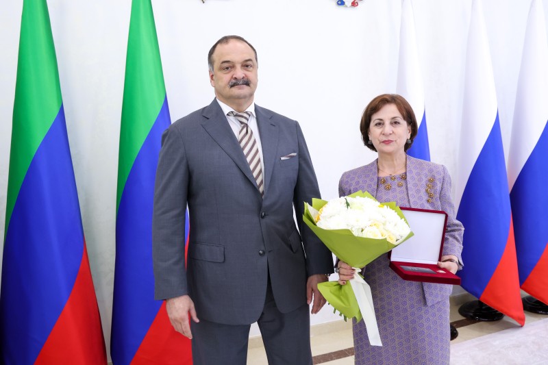 В рамках празднования Дня России Глава Дагестана Сергей Меликов вручил государственные награды отличившимся деятелям культуры и искусства, среди которых была и ведущий мастер-художник по Кайтагской вышивке этноцентра «Кайтаги» Разият Магомедова, получившая звание «Заслуженный работник культуры Республики Дагестан».