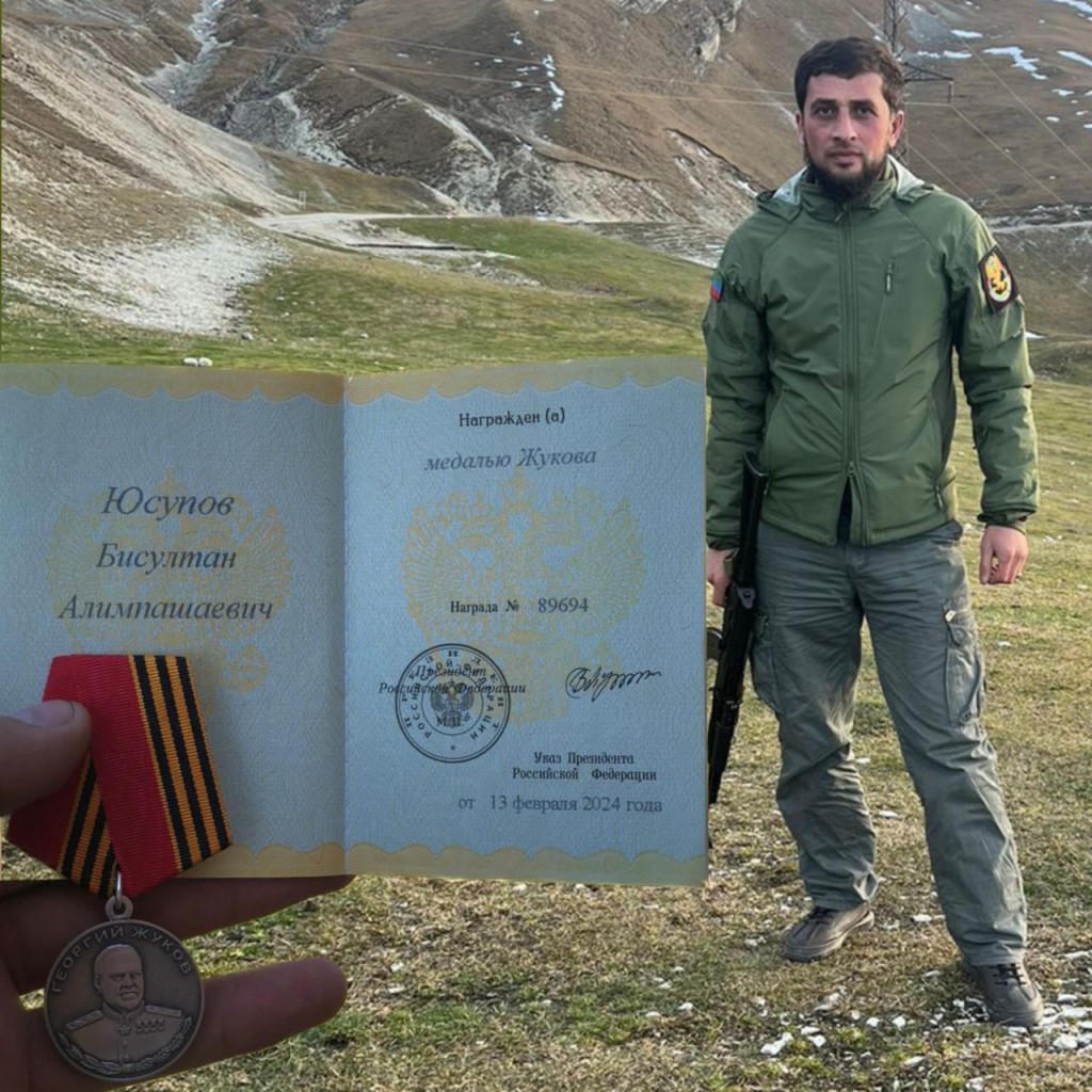 Указом Президента РФ В.В.Путина, за отвагу, самоотверженность и личное мужество, проявленные в боевых действиях при защите Отечества и государственных интересов РФ, участник специальной военной операции из селения Дылым Казбековского района Бисултан Юсупов награжден медалью Жукова.