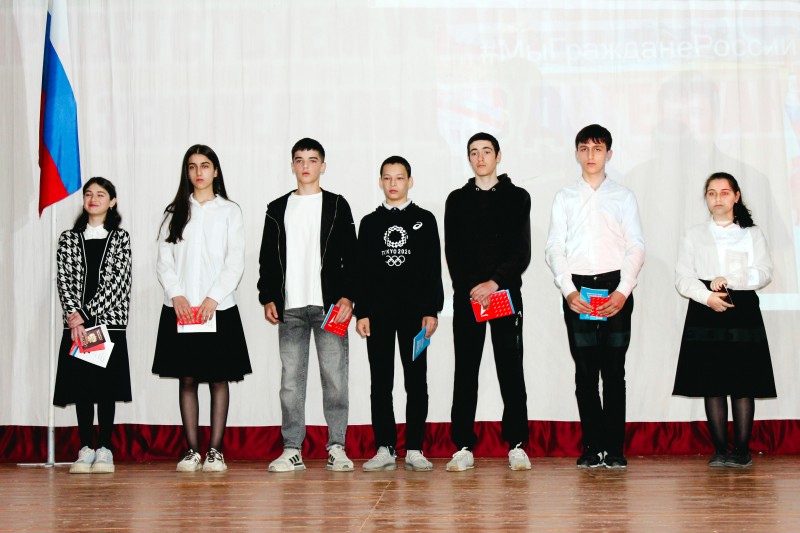 Затем подростки получили свой первый документ, также им вручили копии Конституции РФ и подарки. Мероприятие продолжилось концертной программой, подготовленной артистами Центра культуры села Маджалис и воспитанниками Детской школы искусств района. В завершение праздника была сделана общая фотография на память.