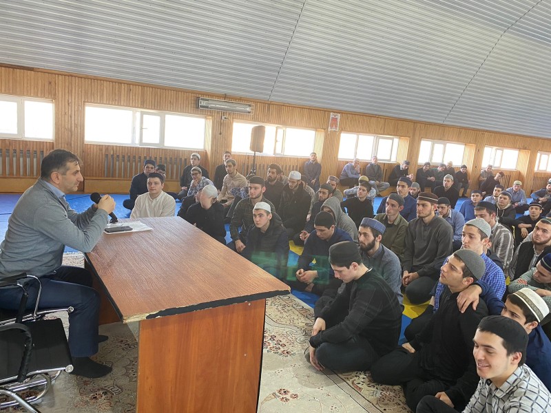 20 февраля сотрудник Минннаца РД Мурад Раджабов провел встречи со студентами Духовной образовательной религиозной организации высшего образования «Дагестанский исламский университет имени шейха Мухаммад-Арифа» и Профессиональной духовной образовательной исламской религиозной организации «Медресе имени шейха Мухаммад–Арифа» (г. Махачкала).