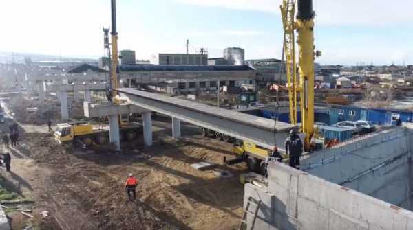 В Дербенте начался монтаж балок пролетного строения путепровода объездной дороги от федеральной трассы в районе села Сабнова.