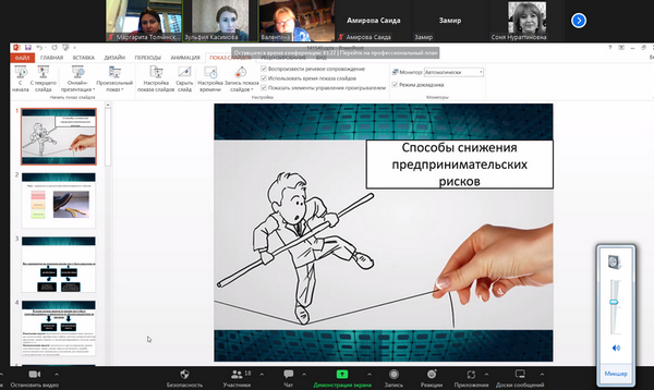 Далее докладчиком были освещены все способы снижения предпринимательских рисков, их преимущества и недостатки.