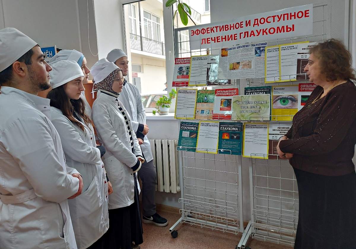 Научная библиотека ДГМУ подготовила выставку периодических изданий на тему «Эффективное и доступное лечение глаукомы» и провела беседу со студентами 3 курса педиатрического факультета,