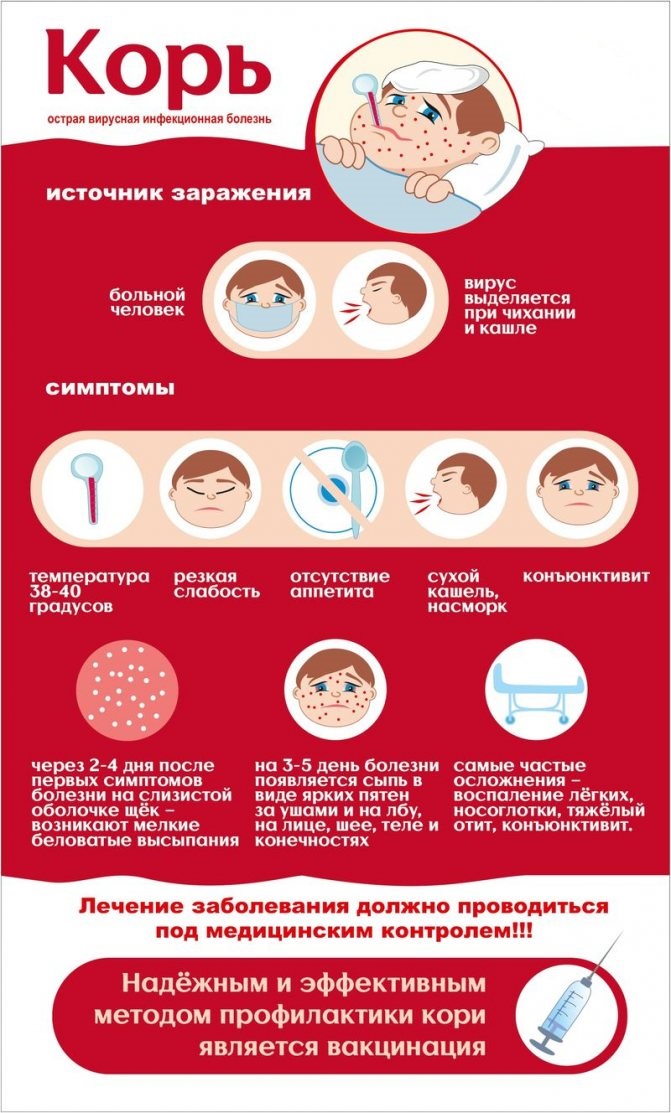 Корь у детей занимает особое место среди инфекционных болезней. Симптомы кори у детей проявляются высокой температурой, характерной сыпью, болью в горле, кашлем и признаками выраженной интоксикации организма. Заболевание корь может протекать с серьезными осложнениями вплоть до летального исхода. Ежегодно от кори умирает более 150 тысяч людей, преимущественно дети до 10 лет.