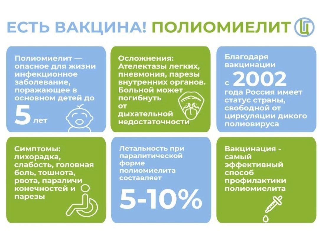 В связи с неблагополучием по заболеваемости полиомиелитом в отдельных странах мира и сохраняющейся высокой миграцией, обращаем внимание родителей, что непривитые дети рискуют заразиться этой чрезвычайно контагиозной и опасной инфекцией.