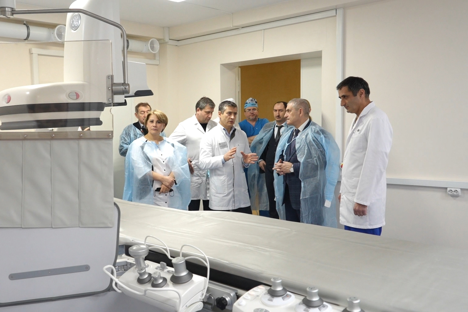 В сопровождении главного врача медицинского учреждения Хаджимурада Малаева градоначальник ознакомился с эндоваскулярным отделением, где ему продемонстрировали новое оборудование. Один из самых современных на сегодняшний день медицинских аппаратов, полученный больницей по национальному проекту, поможет спасать больных с инфарктом миокарда, а также проводить другие операции, включая онкологические.