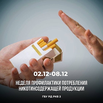 В рамках Нацпроекта «Здравоохранение» с 02 по 08 декабря 2024 года в России проводится неделя профилактики потребления никотинсодержащей продукции.